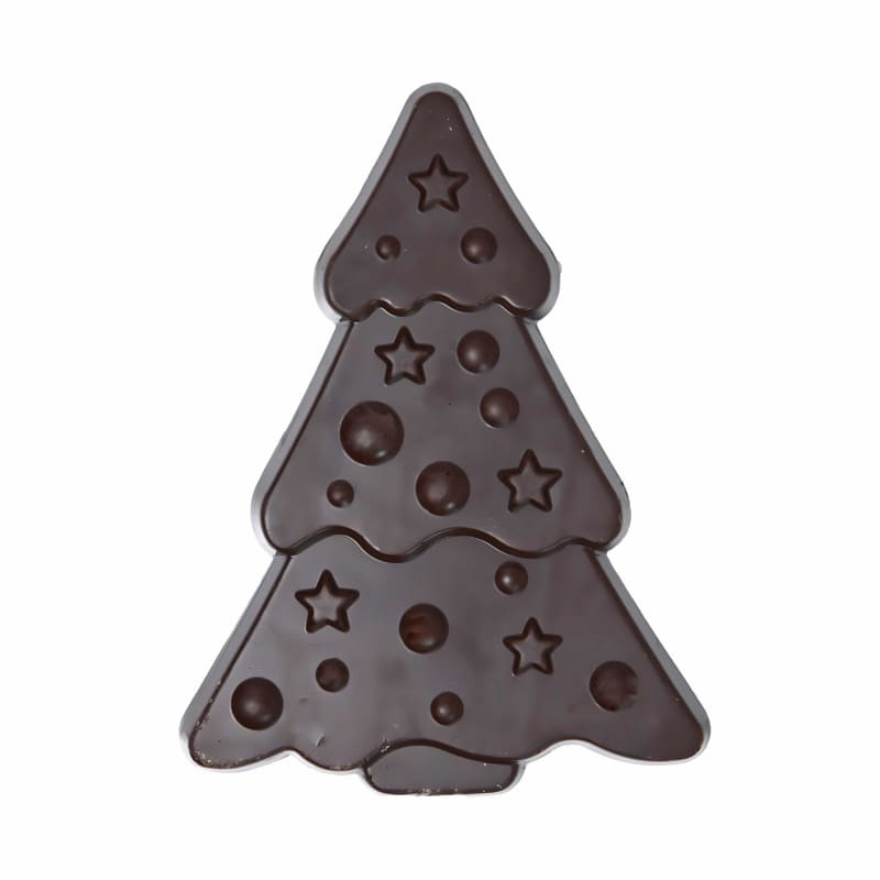 Plongez dans l'ambiance de Noël grâce à notre sapin à croquer au chocolat noir aussi beau que bon. Décoré de fruits secs et de billes croustillantes enrobées de chocolat blanc, il conviendra aussi bien en décor d'assiette pour vos repas de fête qu'en attention gourmande à offrir. Plus d'infos