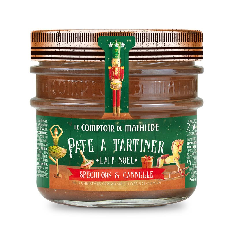 La pâte à tartiner édition de Noël garantie sans huile de palme, ni OGM, enveloppe les papilles de douceur par son goût intense de noisette, subtilement marié à la cannelle et au biscuit Spéculoos. Une recette inédite pour les fêtes de fin d'année et dont on ne se lasse pas.