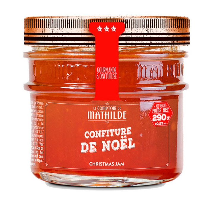 Confiture artisanale fabriquée spécialement pour les fêtes de fin d'année. Délicieuse sur vos tartines du petit-déjeuner, dans un gâteau roulé ou encore dans vos recettes sucrées - salées ! Elle est composée d'un mélange subtil de fruits : abricot, poire, ananas, figue, orange et clémentine mais aussi de fruits secs : amandes, noix et raisins secs. Retrouvez toutes les saveurs de Noël dans cette confiture préparée avec soin.
