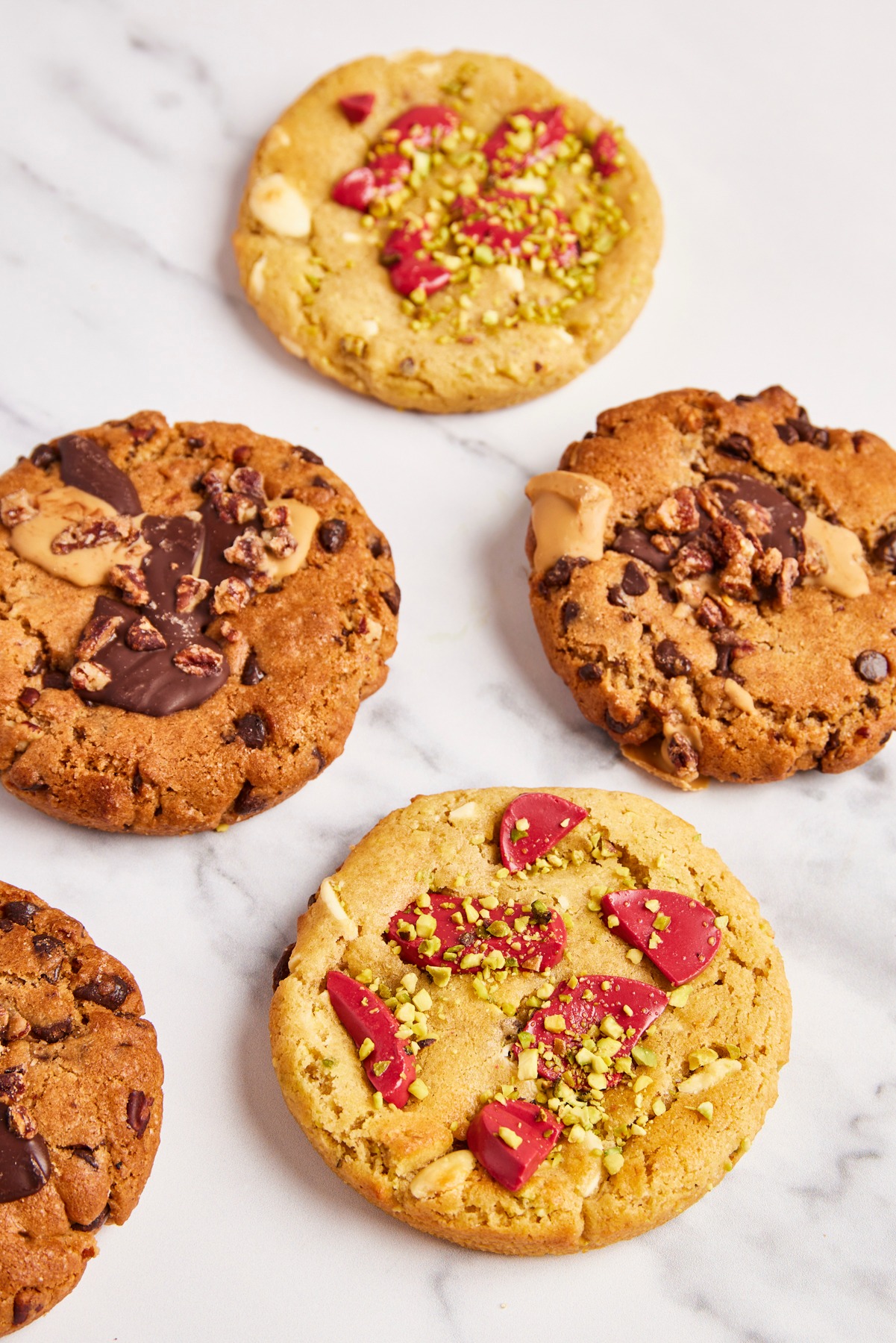 Notre délicieux cookie pistache est élaboré à partir d’ingrédients soigneusement sélectionnés tels que des œufs frais, des éclats de pistache. Il allie gourmandise et authenticité.